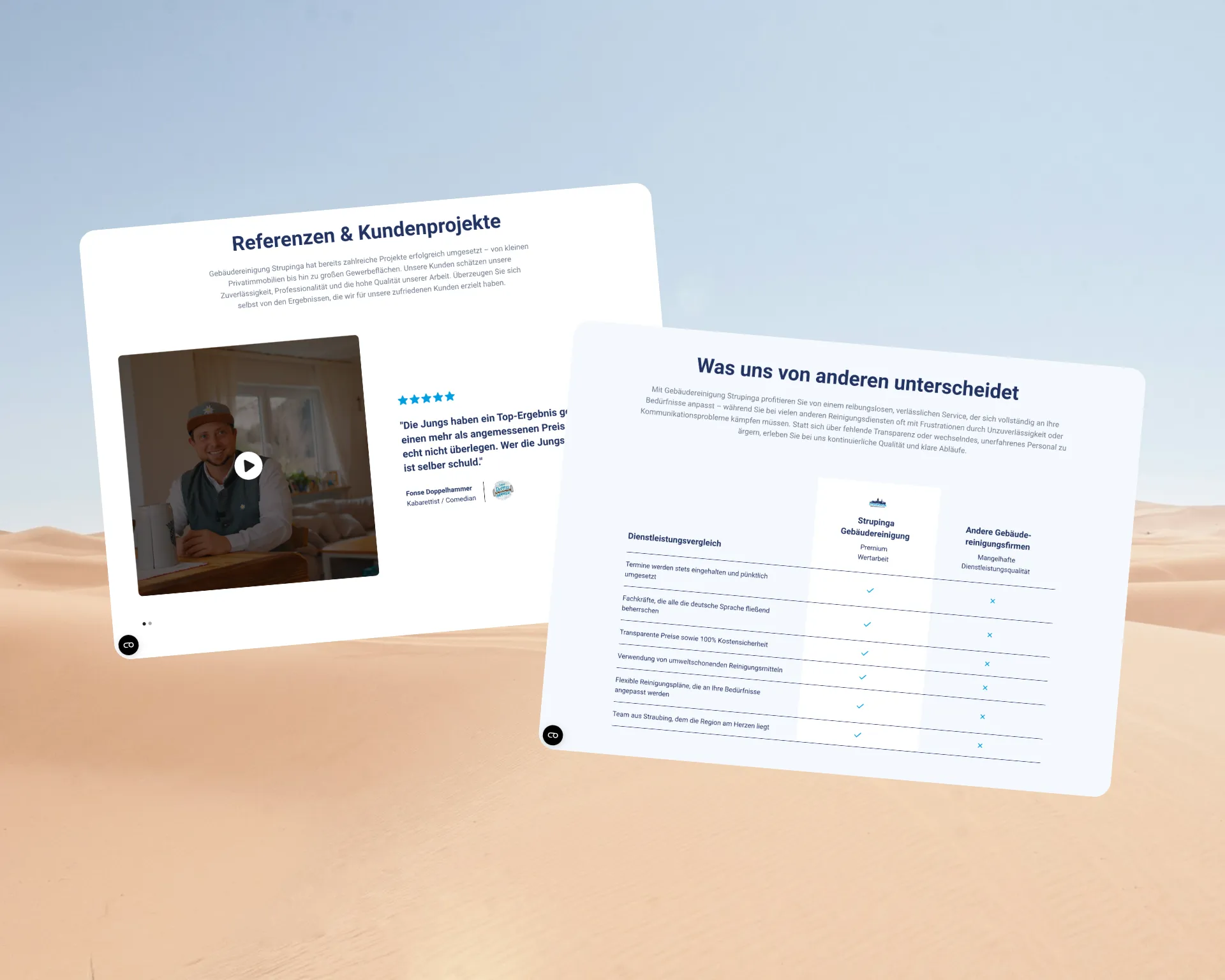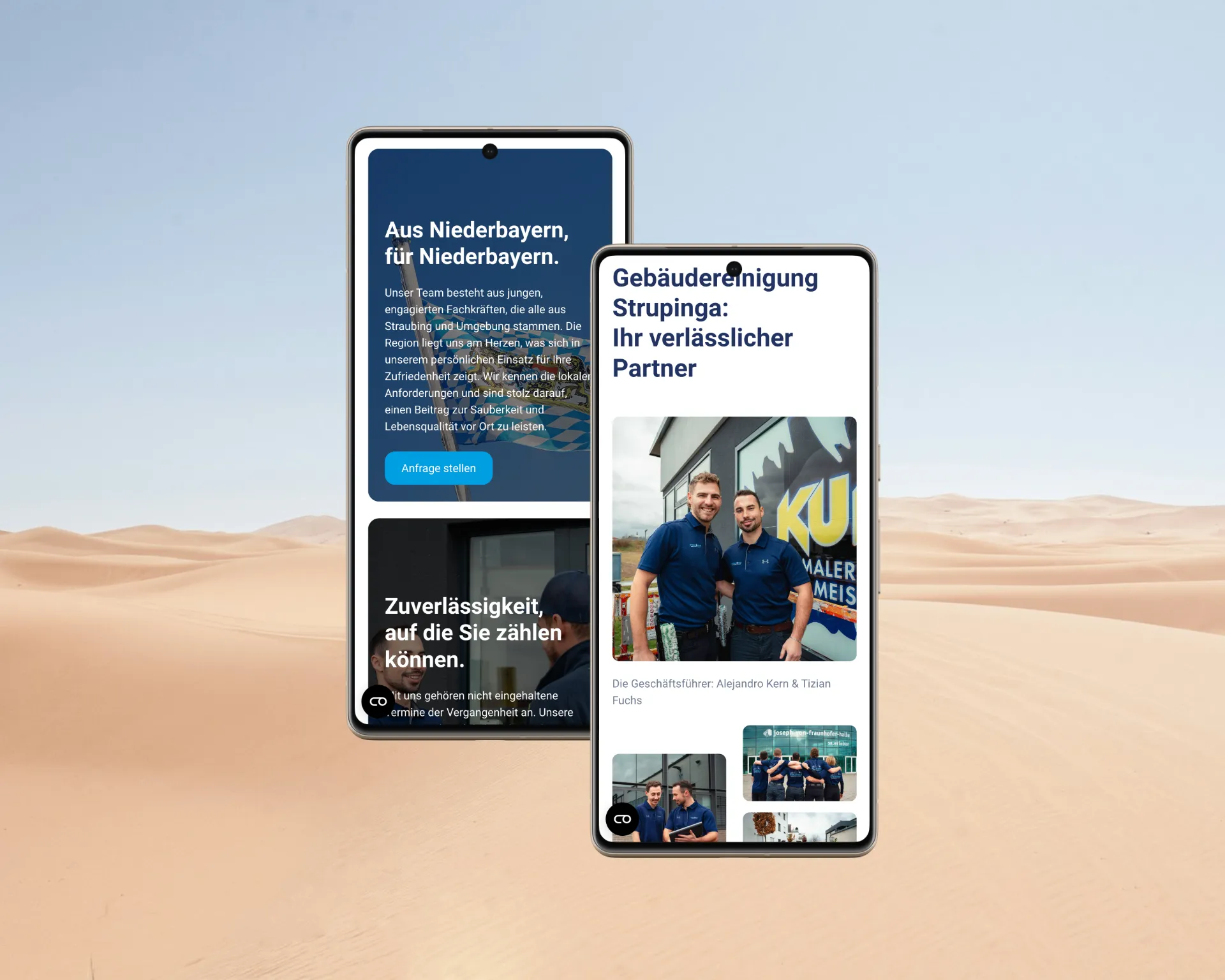 „Wir haben von Freunden, Familie und Kunden durchweg positives Feedback zu unserer neuen Website erhalten. Schon kurz nach dem Launch kamen über die Seite mehrere Anfragen rein – sowohl kleinere als auch größere Aufträge. Die Zusammenarbeit war einwandfrei. Unsere Wünsche und Anforderungen wurden genau so umgesetzt, wie wir es uns vorgestellt haben. Wir sind absolut zufrieden und können Korbinian und sein Team mit bestem Gewissen weiterempfehlen.“