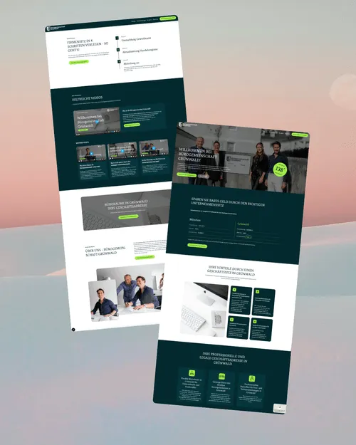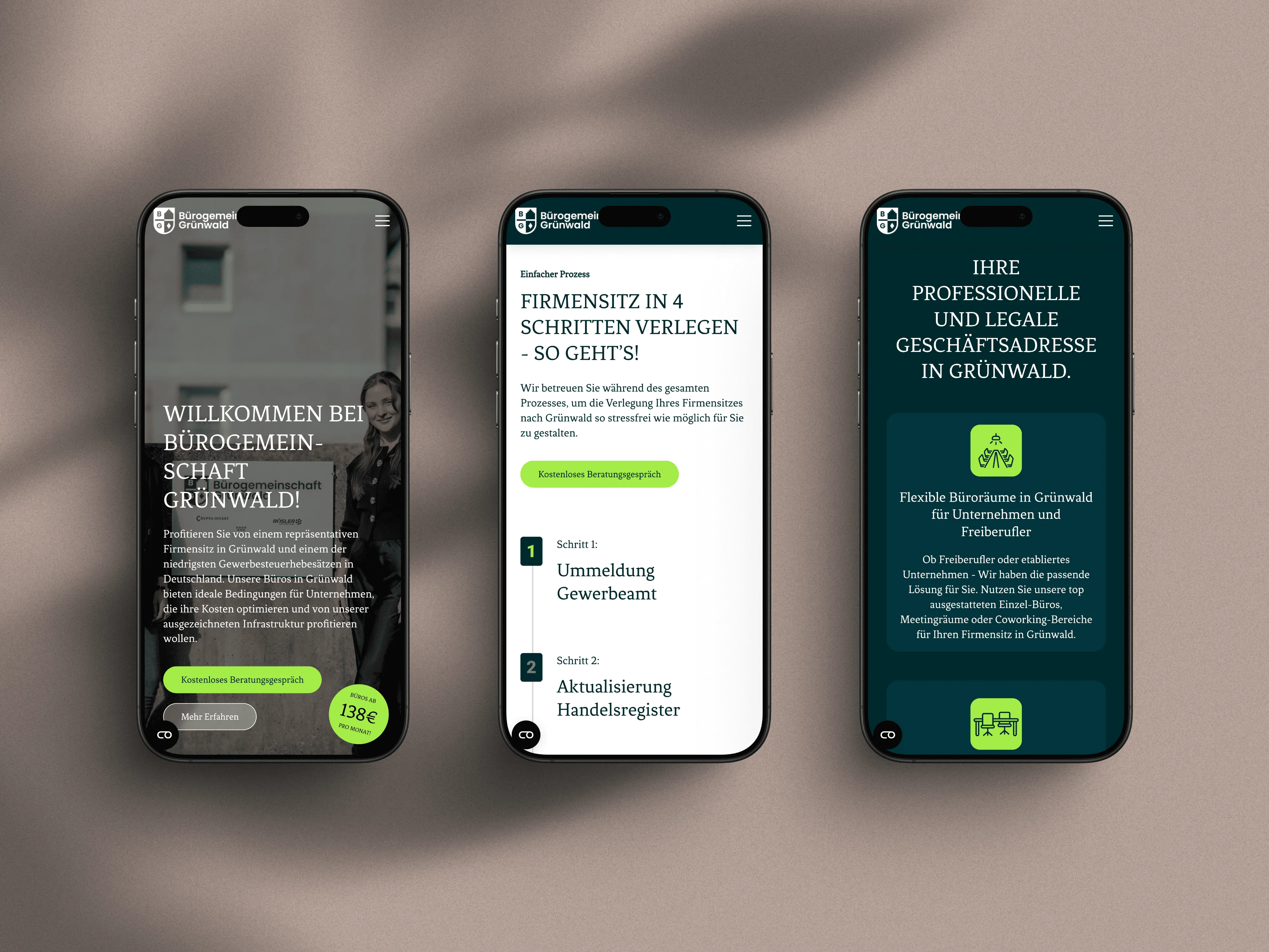 Für das neu gegründete Unternehmen "Bürogemeinschaft Grünwald" in Grünwald bei München entstand eine schlanke, moderne Website, die alle wichtigen Informationen auf einen Blick vermittelt.